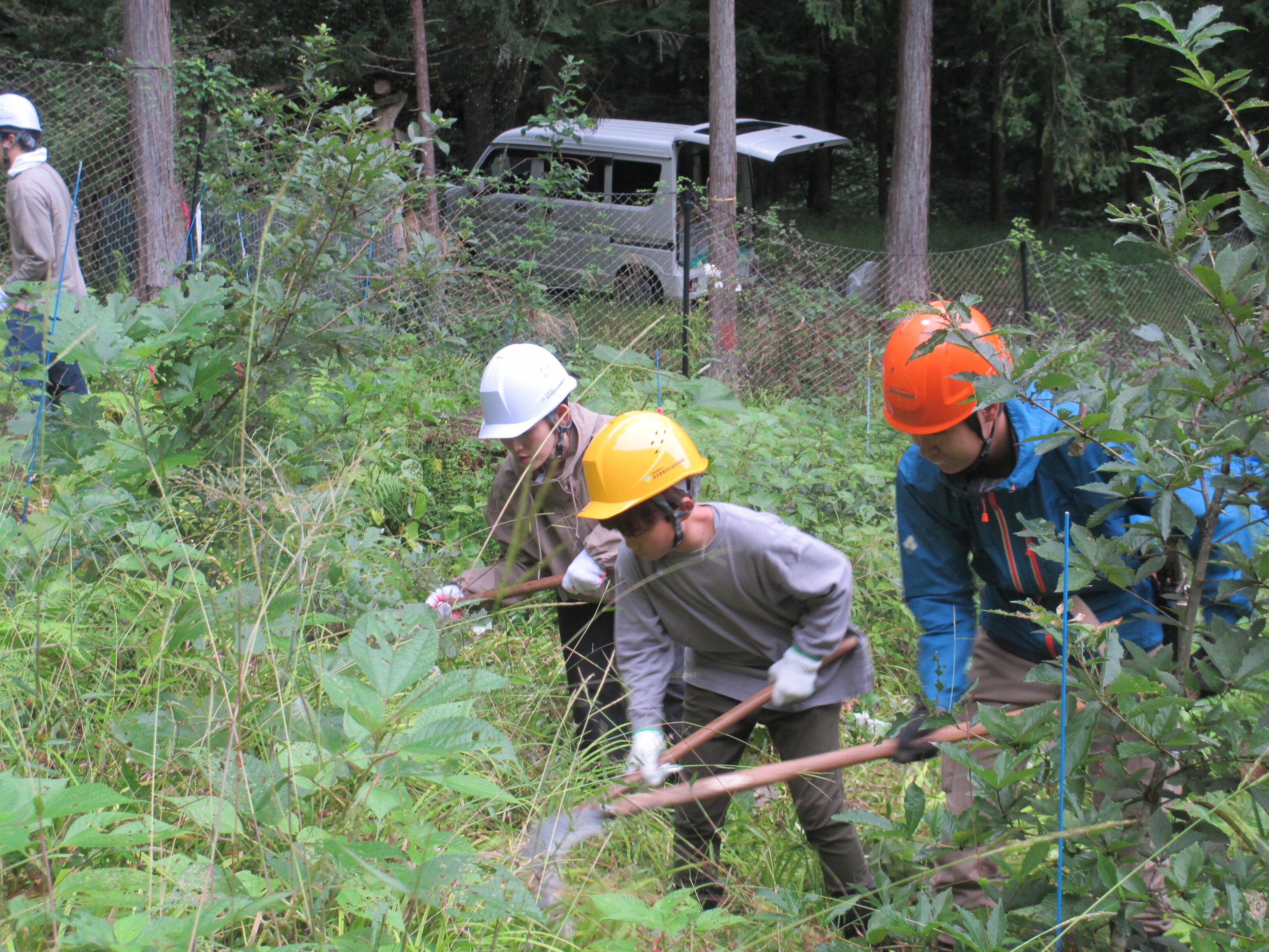 暑さに負けるな!苗木の生長をじゃまする下草を刈り取る!
